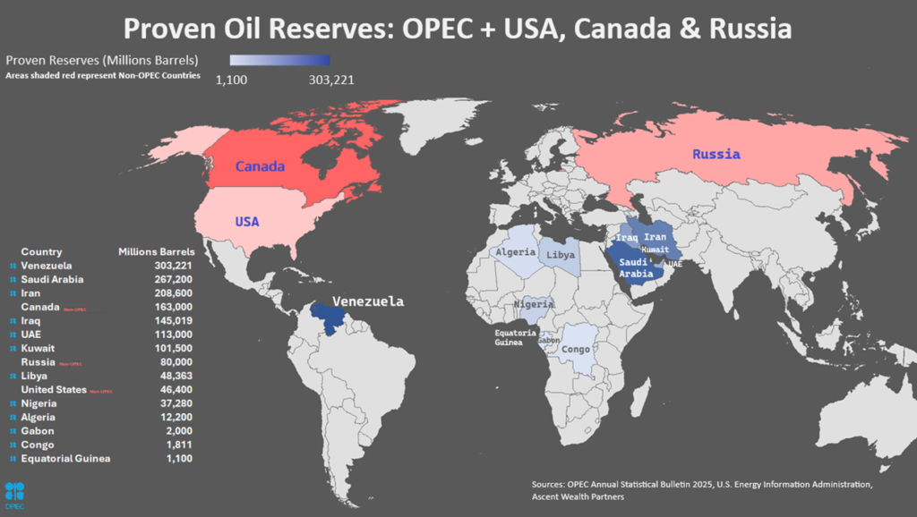This creates an unusual market dynamic. Rather than posing a near-term threat to oil supply, Venezuela represents a long-term source of potential additional production. If current developments lead to political stabilization and renewed investment, the result over time would be increased production entering a global market that is already well-supplied. Rather than a supply disruption that drives prices higher, Venezuela could become a meaningful source of additional barrels that could exert downward pressure on energy prices in the years ahead.